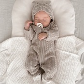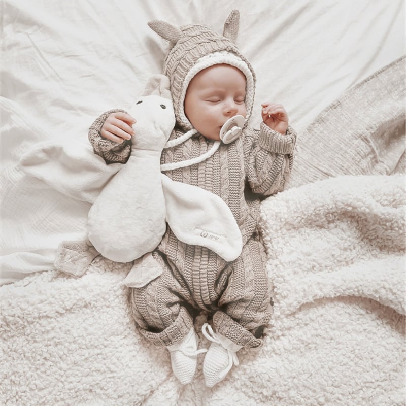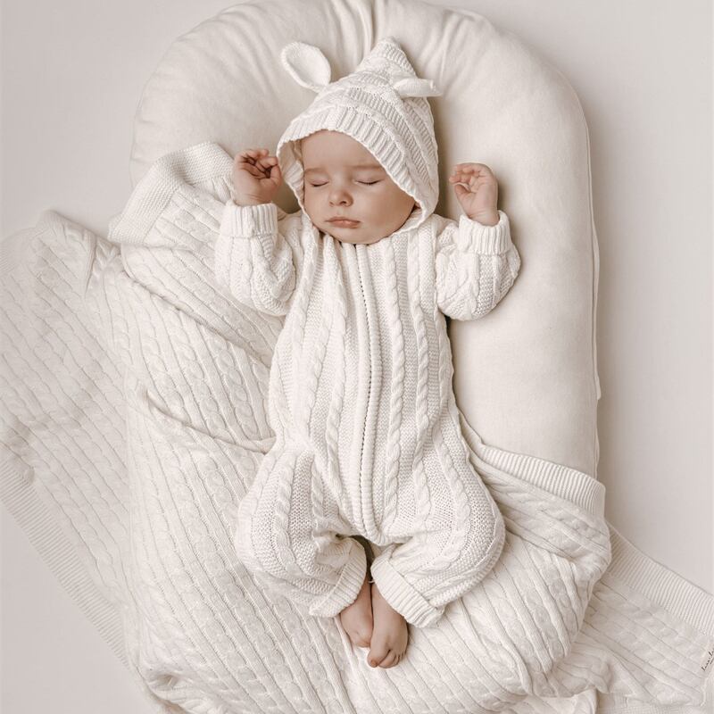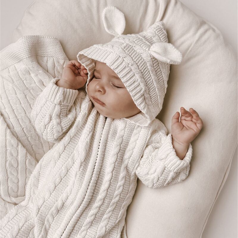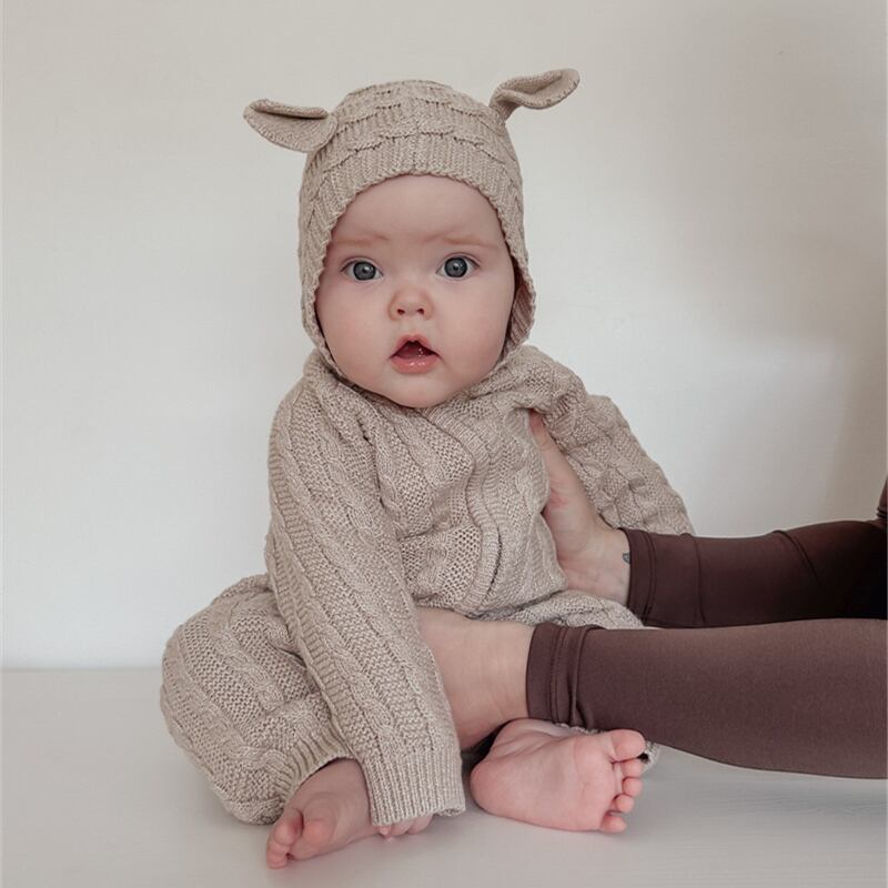 2025秋新作 ベビー服 アラン模様 ニット オールインワン 可愛い ロンパース 新生児 クマ耳 子供服