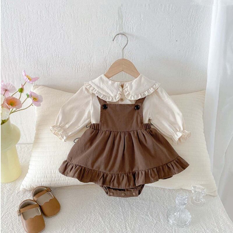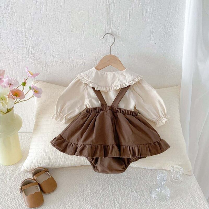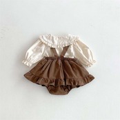 可愛いデザインが特徴の女の子用セットアップ!長袖のシャツとサロペットが一体となっており、着心地も抜群です。遊び盛りの赤ちゃんにもピッタリなロンパースタイプで、動きやすさを重視しながらも可愛いスタイルを実現しました!