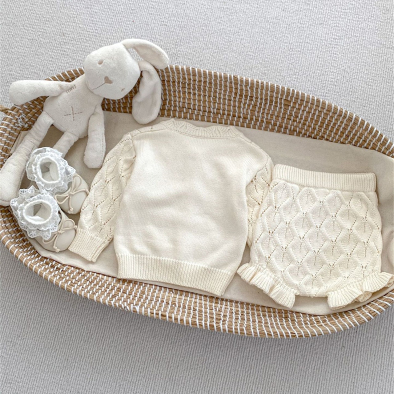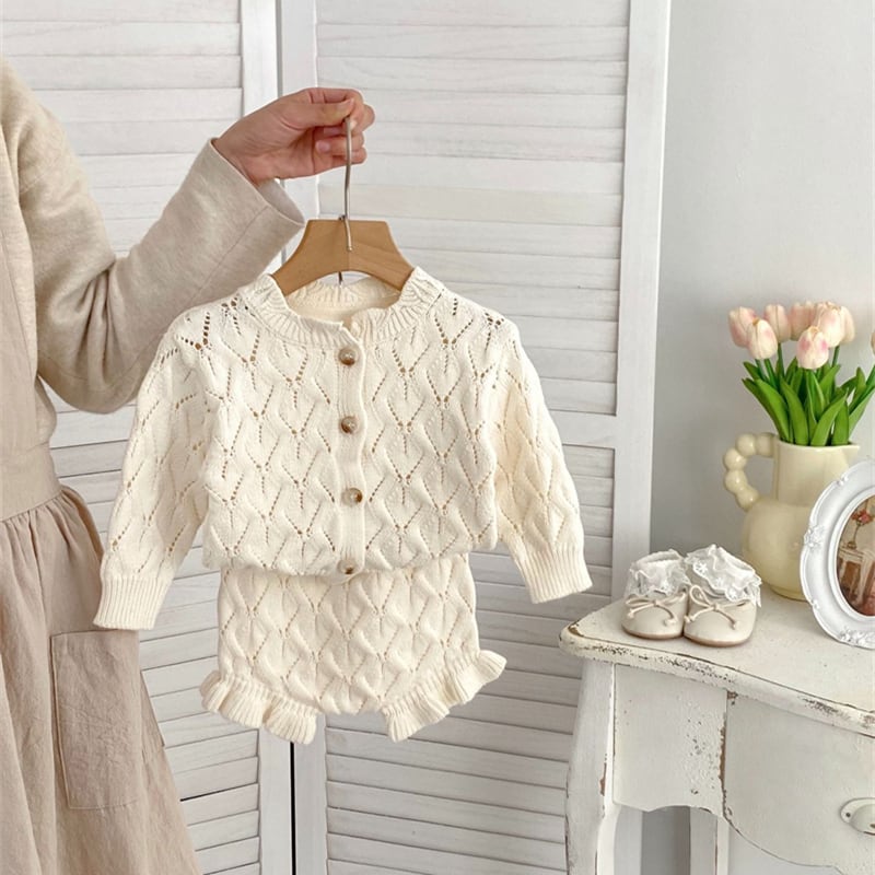 可愛らしいカーディガンとブルマーのセットアップは、秋冬のおしゃれにぴったりです!柔らかなニット素材が心地よく、子供たちが元気に動き回ることができます。秋の乾燥した空気や冬の寒さからしっかり守ります。