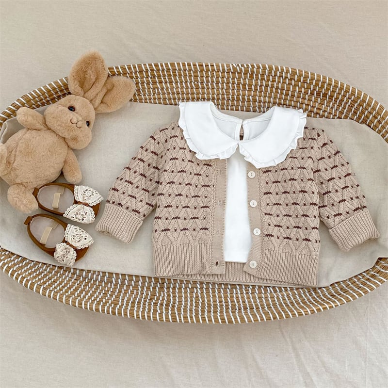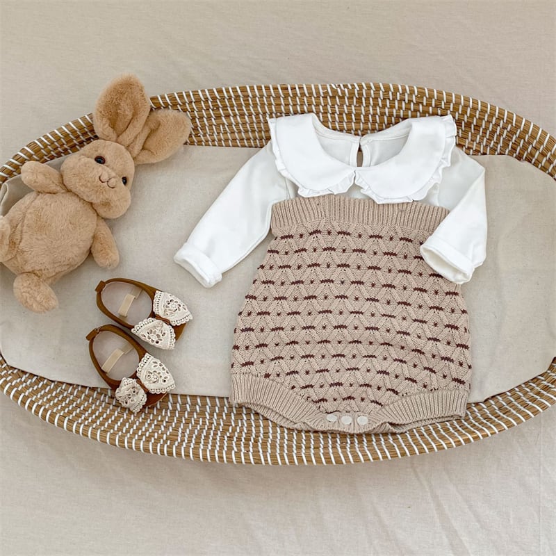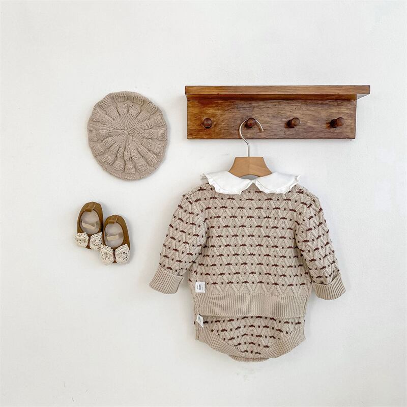 可愛い花柄が施されたニット素材で、赤ちゃんのおしゃれを引き立てます。優れたデザインと機能性を兼ね備えたこのセットアップは、お出かけや普段使いにぴったりのアイテムです。