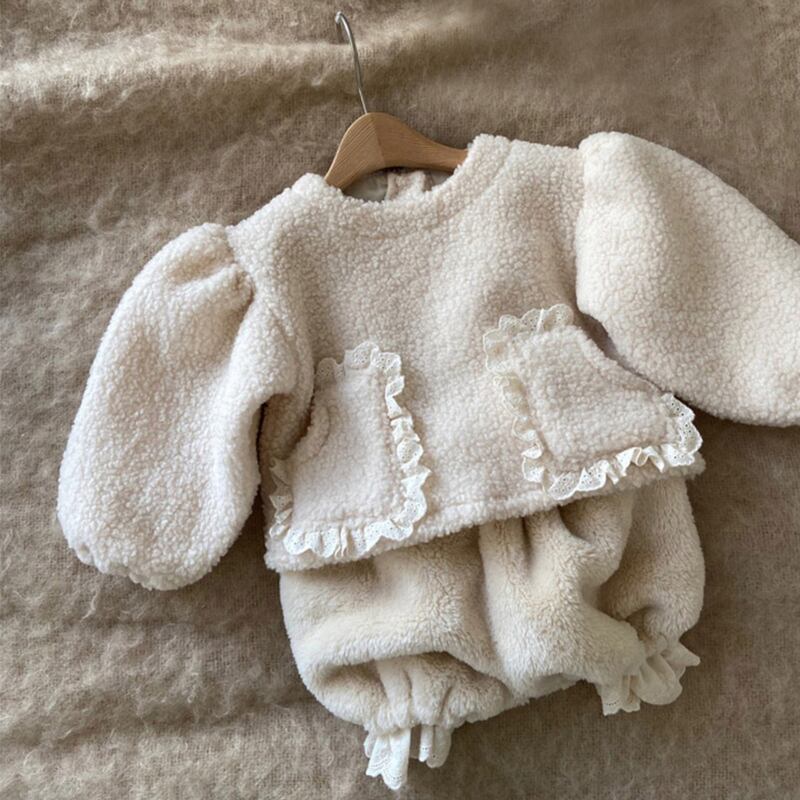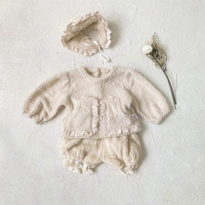 この冬、子供たちにぴったりなあったかで可愛いセットアップが登場!ふわふわのボア素材と優雅なレースドッキングが魅力的です。寒い日でもおしゃれを楽しめるアウターとして、特別な日のお出かけにも最適です!