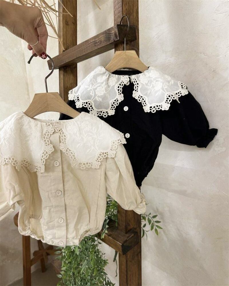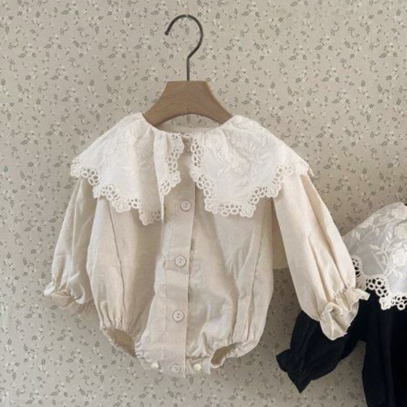 長袖デザインは、秋の肌寒い季節にもぴったり!レース襟がとっても可愛らしく、特別な日のお出かけにも申し分ありません。親子でおしゃれを楽しむための一枚です。